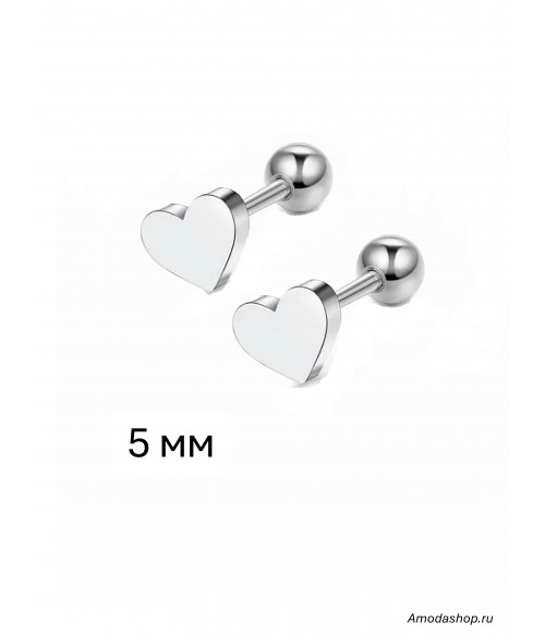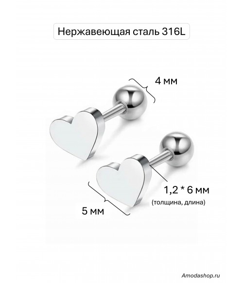 РАЗМЕРЫ: Сердечко: 5 мм, длина штифта: 6 мм, диаметр штифта: 1.2 мм, замок шарик: 4 мм