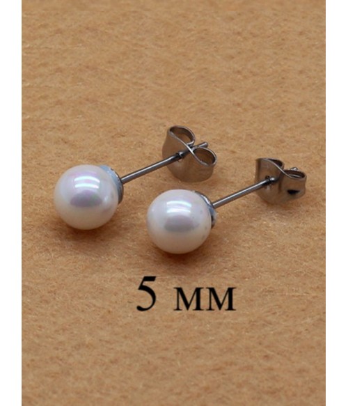 Серьги пусеты с жемчугом из медицинской стали