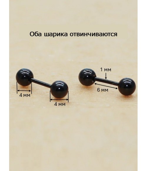 РАЗМЕРЫ: ШИРИНА ШАРИКОВ 4 ММ, ДЛИНА ШТАНГИ 6 ММ, ТОЛЩИНА ШТАНГИ 1 ММ
