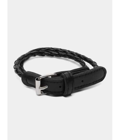 Браслет кожаный плетеный черный
